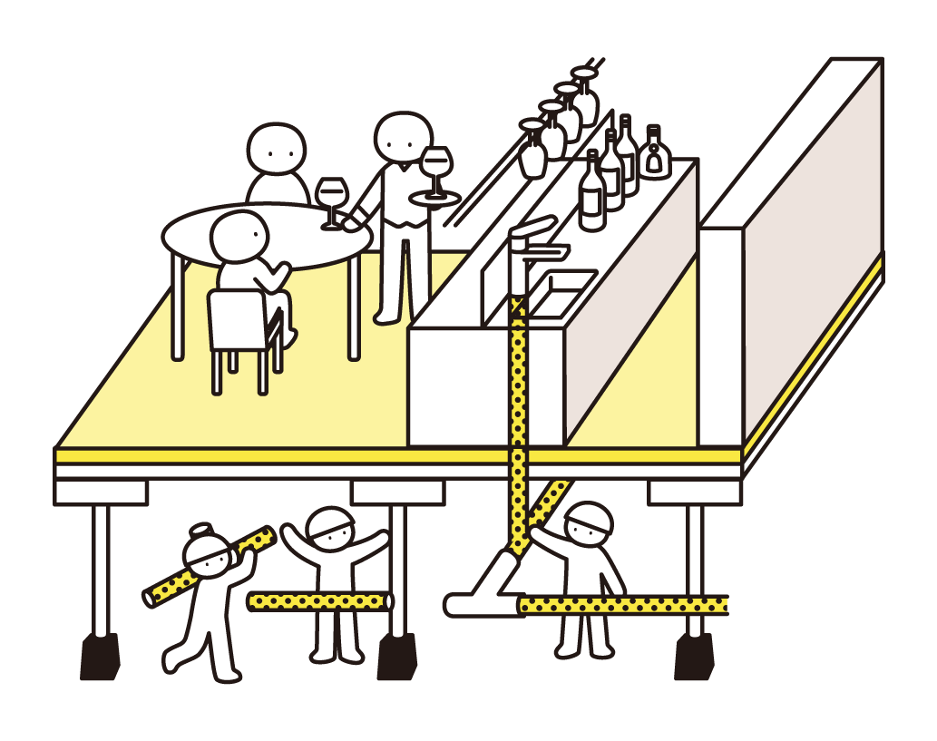 床下に配管できるため水廻りの位置を自由に変えられます |