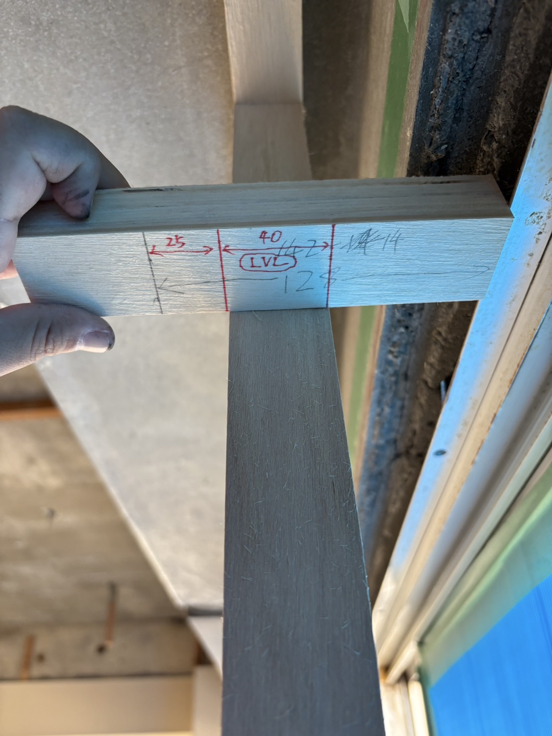 外壁側と窓周りも同様に納まり位置の確認をしながら墨を打っていきます。