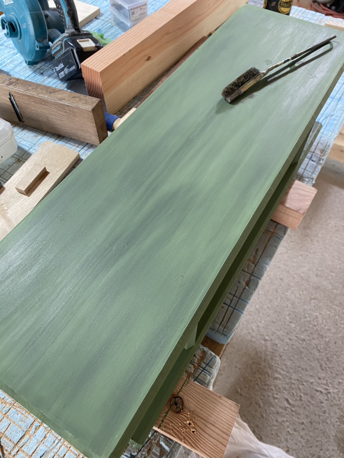真鍮ワイヤーブラシで塗装が剥げない程度に擦り少し黒味が出るように模様を付けました。