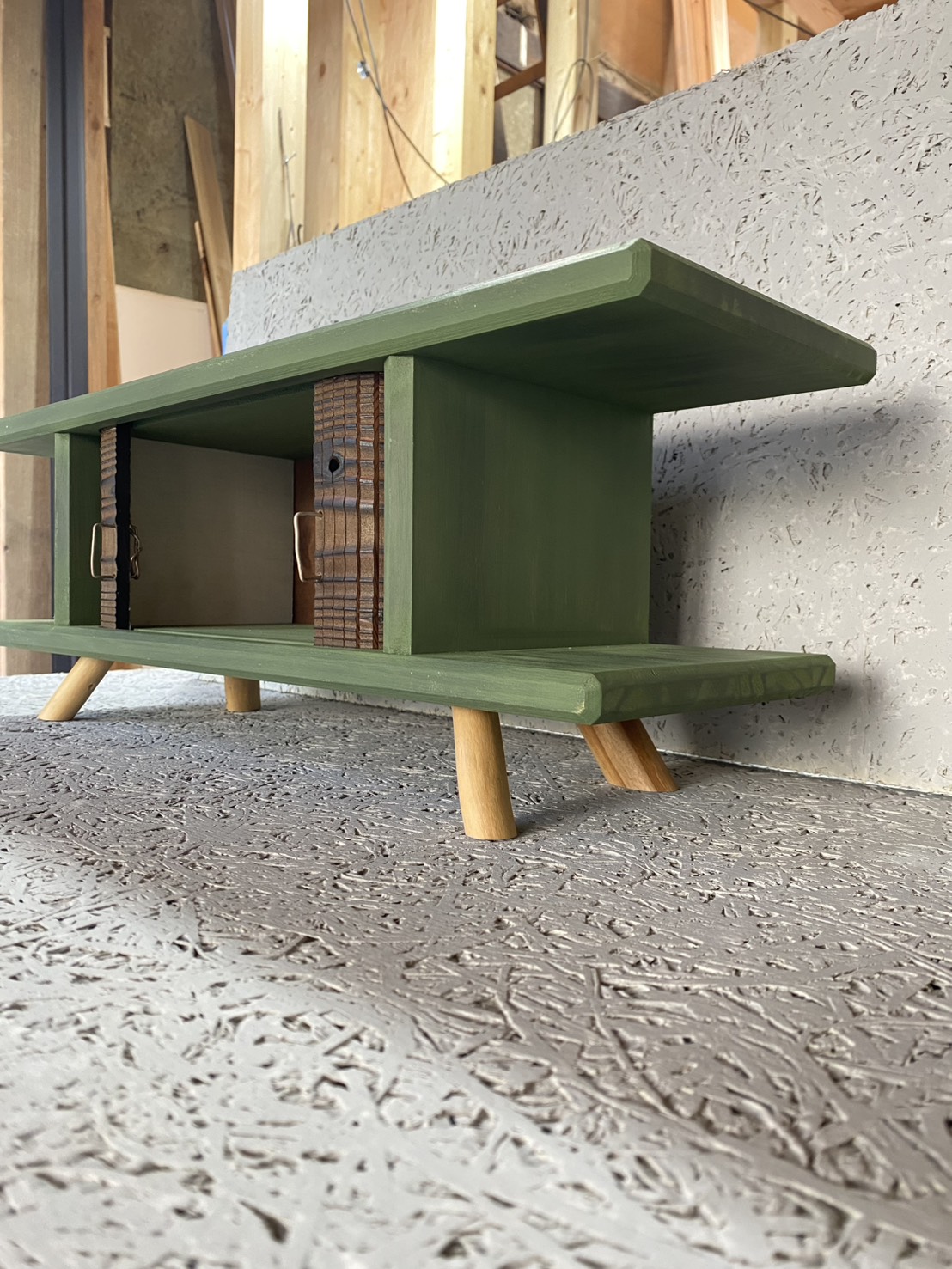 足を付けて、蛇腹扉をはめ込んだ完成品がこちらになります。