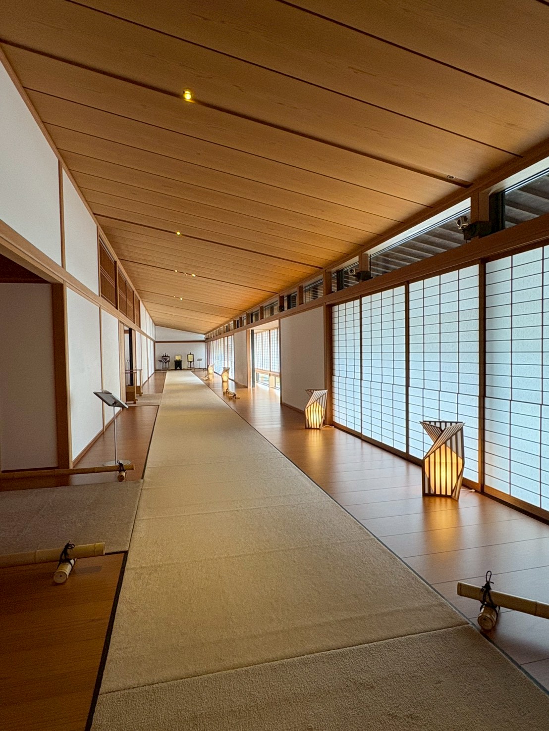 通路の幅は広く、天井は高く、化粧材は木材をメインで使われており、