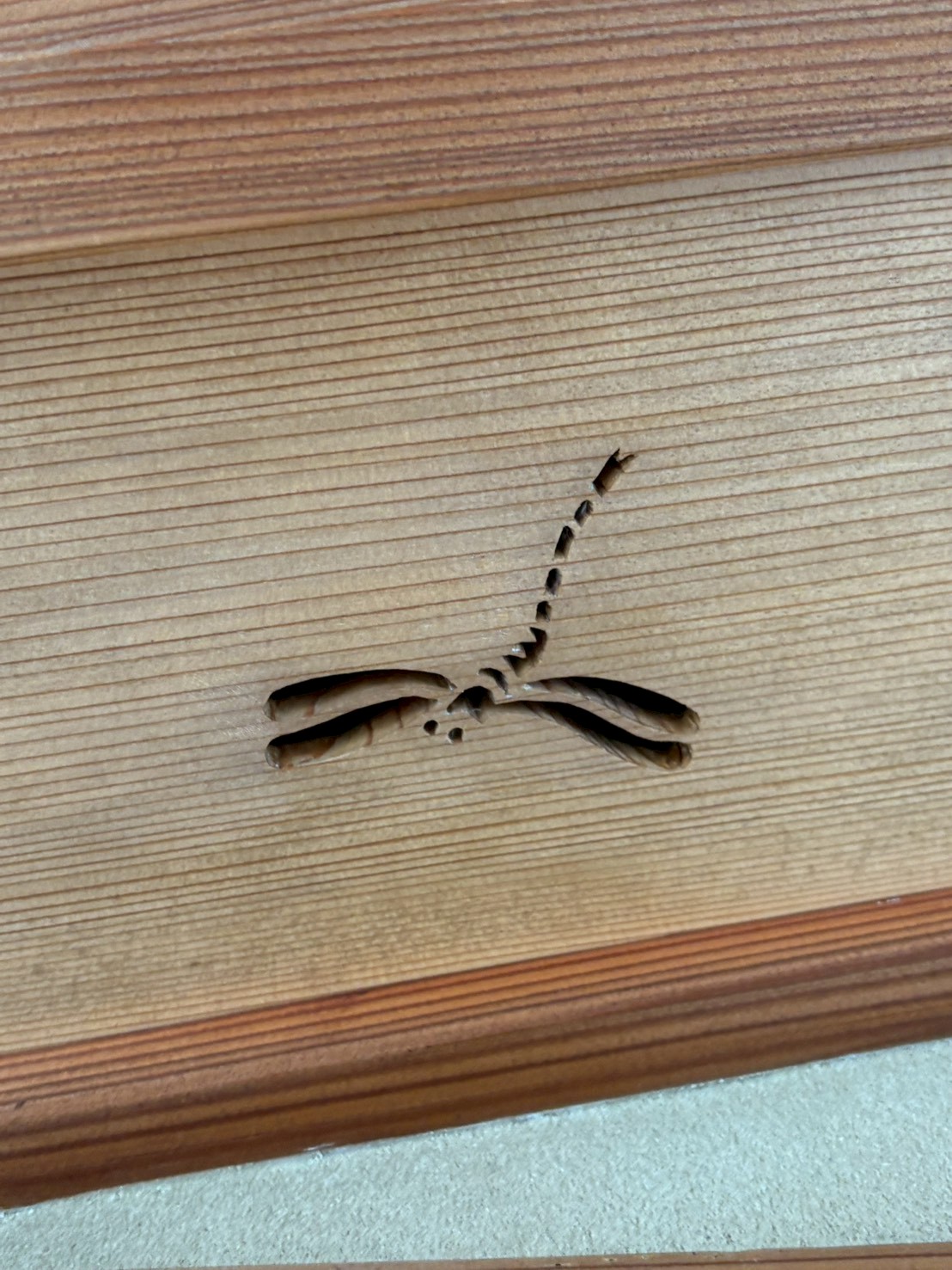 『鈴虫』『蜻蛉』『飛蝗』『蝶々』の彫刻が彫られています。