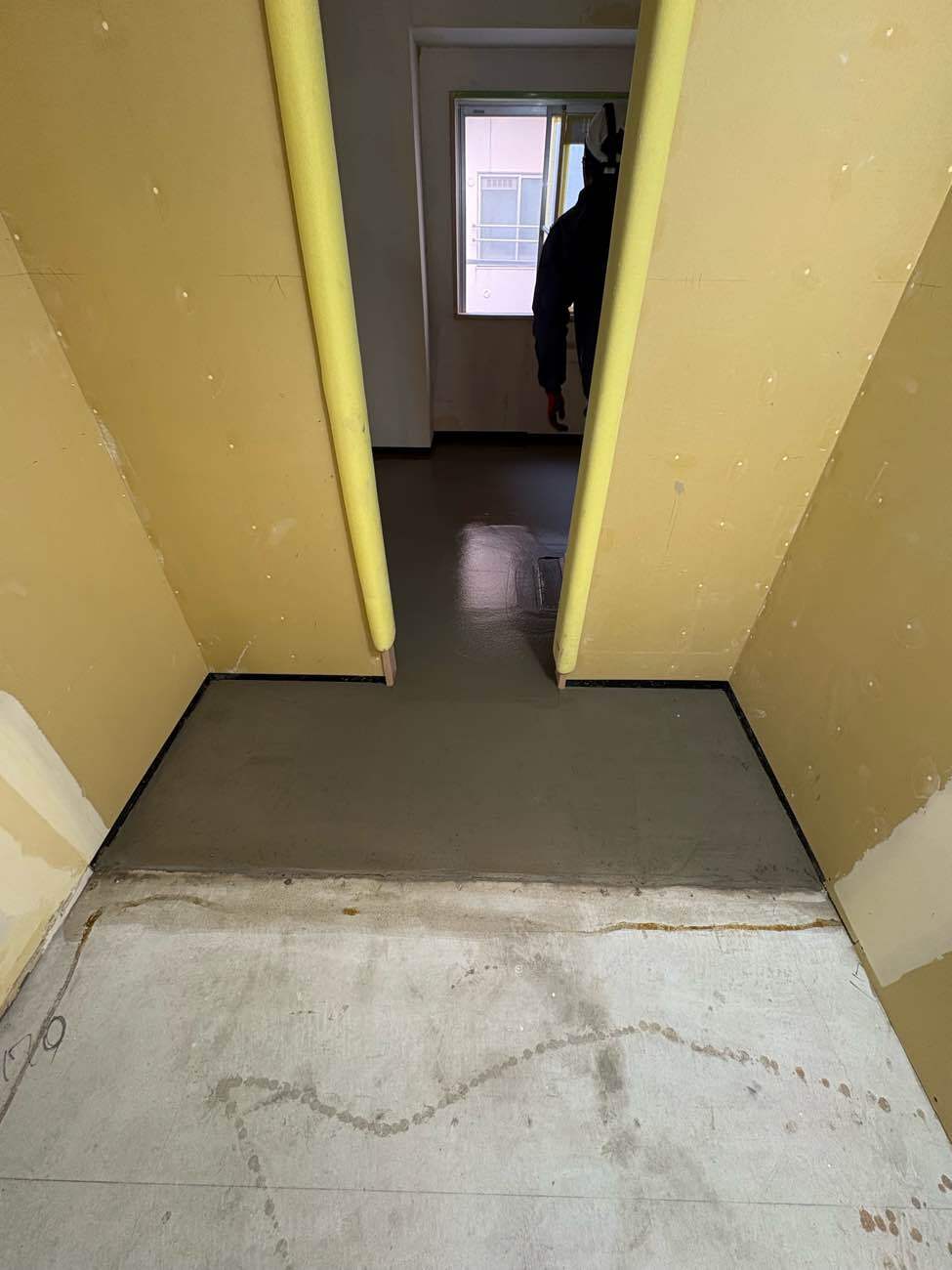 隣の部屋と床の高さを合わせるためモルタルを土間に打ちます。