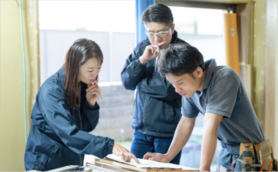 ホーム 選ばれる理由 選ばれる理由 選ばれる理由 選ばれる理由 京都で分譲マンション専門として30年以上の工事実績 私たちアンビアンスはこれまで3 0 0 0 件以上のマンション工事実績があり、マンション特有の「結露・断熱の問題」「音の問題」などのお客様の悩み事を多数解決し、スケルトンリフォーム・リノベーションや断熱リフォーム・自然素材リフォームなど、お客様の様々な想いを叶えることが出来ます。これまでの経験による迅速な対応もお客様から高くご評価いただいている点です。エリアを絞り込んでいることもお客様にきちんと対応できるようにという思いから。共用部の美しい養生を心掛け、工事前の近隣さまへのご挨拶を大切にしています。 お客様に寄り添い、つながりを大切に リフォーム工事では十人十色のお悩み、ご要望があります。現場経験と商品知識が豊富な女性プランナーがお客様の気持ちに寄り添って共感し、女性ならではの視点から最適な商品、素材、デザインなどきめ細やかなプランをご提案いたします。工事中、ホームページにて各現場レポートを日々更新し、離れていても工事の進捗状況をご確認いただけるサービスも行っております。工事後はアフターフォローはもちろん、定期的に最新のイベント情報や最新の施工例などを掲載したニュースレター「くつろぎ通信」を発行し、暮らしをつくるパートナーとして工事終了後もお客様との繋がりを大切にしています。 モノづくりに対する想いとチームワーク 今まで以上に安心・信頼・上質をお届けすべく、アンビアンスはこれらのことを大事にしています。 ①社内でのコミュニケーションも大事にしています。営業・プランナー・工務とそれぞれの役割を越えて、スタッフ間で垣根が無く協力し合える環境を育み、全員でお客様のリフォームを作り上げていく社風があります。 ②アンビアンスでは工務部として、施工から監理までを一貫して行える体制を作っています。社員大工がいる事で現場調査や詳細な打ち合わせを密にし、高い工事精度を実現しています。 ③現場マナーの配慮を徹底します。工事をきっちりと完了するのは当たり前ですが、 その過程がキレイであることも重要であると私たちは考えています。少々厳しい現場マナーを徹底していまが、より良いものを作ろうという心意気の職人さんたちは協力的で、互いに知恵を出し合いながらマナー品質向上に取り組んでくれています。業者協力会の交流会なども実施し、お客様のアンケートを参考に情報を共有するなど、下請けの職人さん達とのコミュニケーションを大事にしています。 提案力と技術力の高さ 「世界に1つのオリジナルキッチン」をご提案いたしますキッチンアカデミーでプランナー・設計士・大工がしっかりと研修を受けており、メーカーものの決まった形やサイズから選ぶのではなくて、「住まいの形に合わせてキッチンの形やレイアウトも自由に考えたい! 」「海外製品の設備機器を自由に選びたい! 」などのご要望にお応えします。また、腕の良い社員大工がお施主様のご要望に合わせてつくる「世界にひとつの造作家具」も大変ご好評いただいています。経験豊富な大工達の高い技術と向上心を持ってお客様の「愛おしくなる暮らし」を実現するお手伝いをさせていただきます。