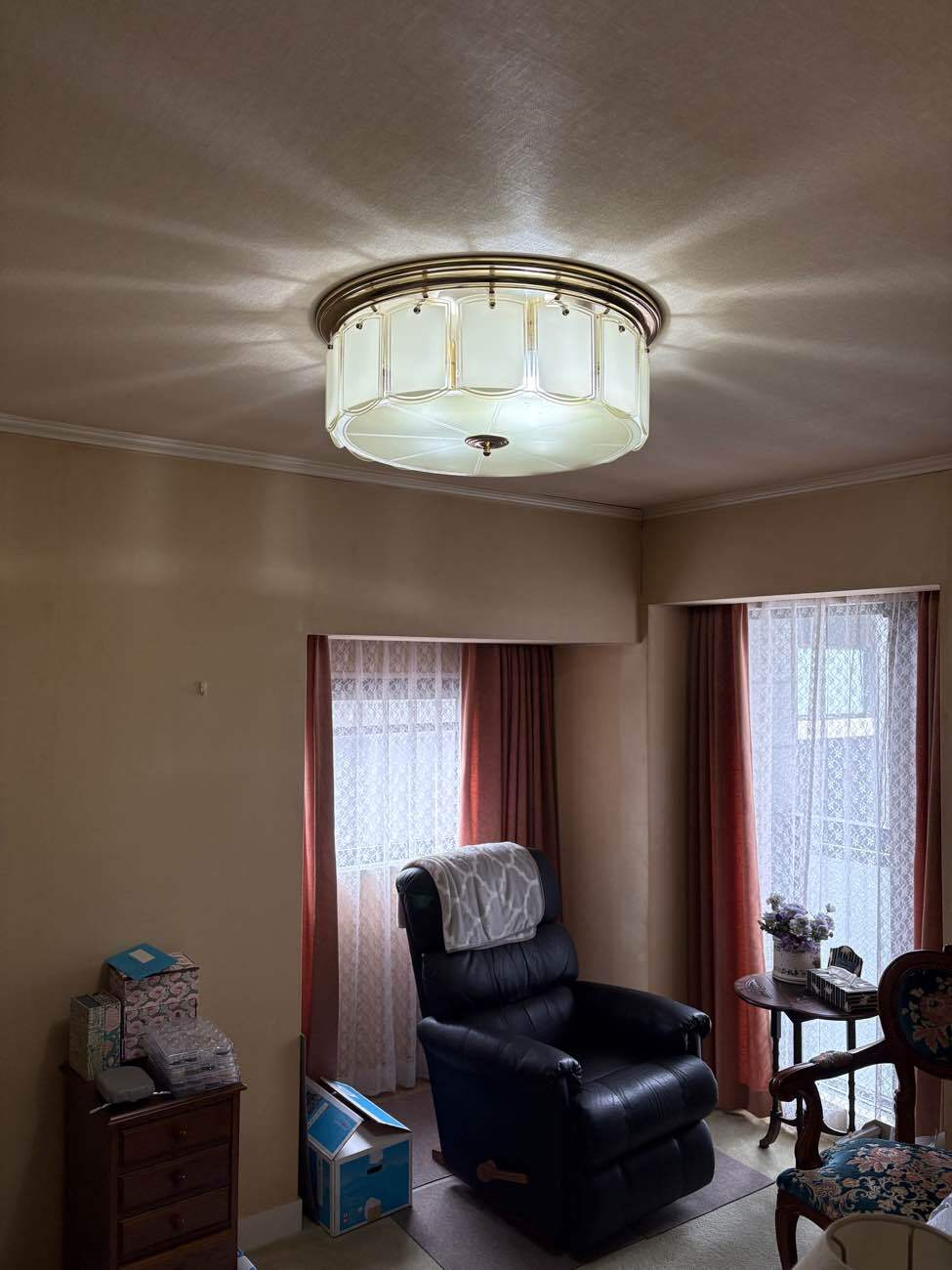 リビングはカバーがお花の形をしたエレガントな照明を気に入られ、取り付けた瞬間お部屋とピッタリ!!と感じました。